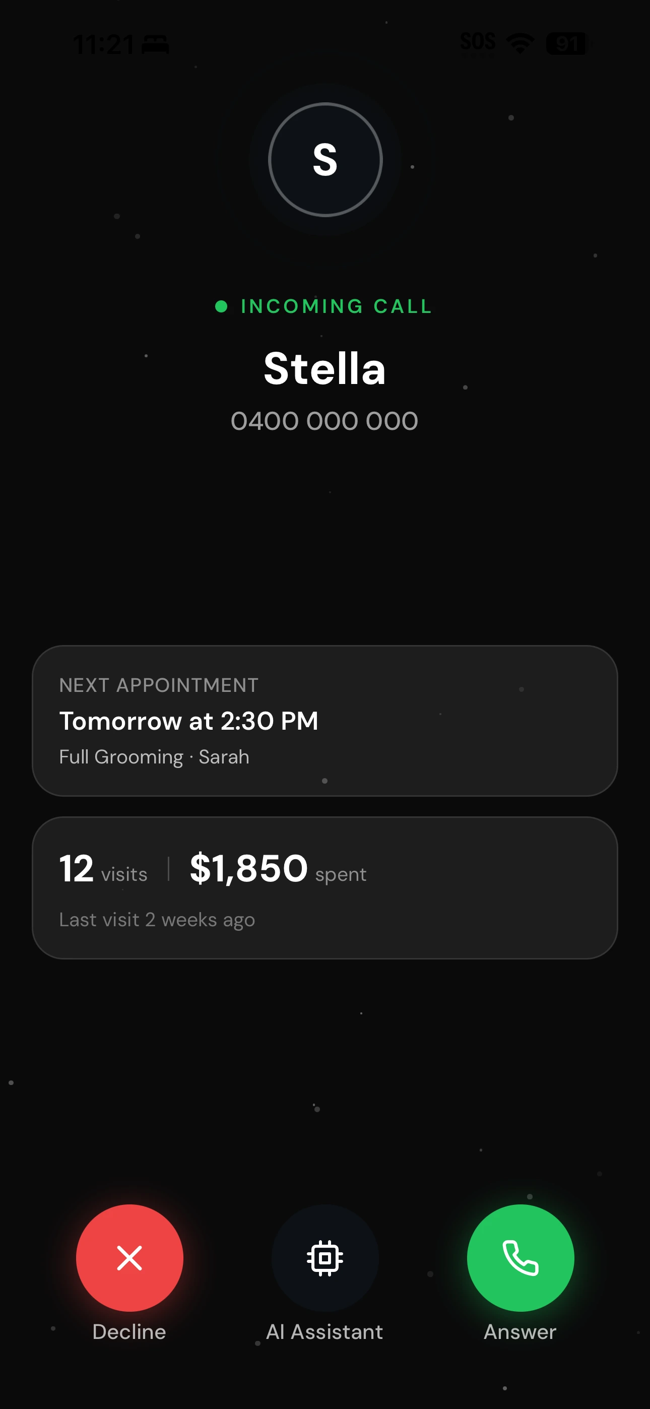 You're with a client. The phone rings. Seglo picks up, finds a time that works, and books it — no hold music, no voicemail, no missed revenue.